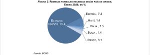 El BCRD explica que el desempeño económico de los Estados Unidos fue uno de los principales factores que incidió sobre el comportamiento de las remesas, ya que desde ese país se originó el 79.4 % de los flujos formales del mes de enero. Por un lado, la tasa de desempleo general del país norteamericano se ubicó en 4.3 % en el mes de enero, variando ligeramente respecto al 4.4 % del pasado mes de diciembre.