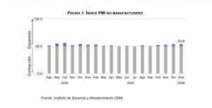 Adicionalmente, se resalta que el índice de gestores de compras (PMI por sus siglas en inglés) no manufacturero del Instituto de Gerencia y Abastecimiento (ISM por sus siglas en inglés) registró un valor de 53.8 en dicho mes, al igual que en diciembre de 2025, marcando el decimonoveno mes consecutivo de expansión en el sector servicios, donde se emplea gran parte de la diáspora dominicana.