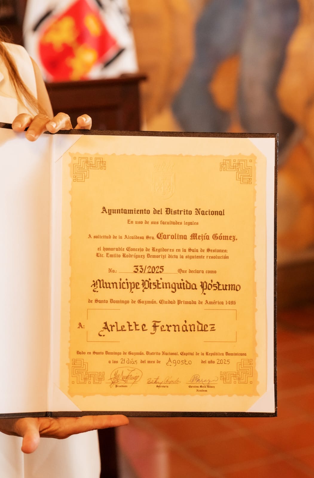Alcaldía del DN reconoce a Arlette Fernández como munícipe distinguida de manera póstuma